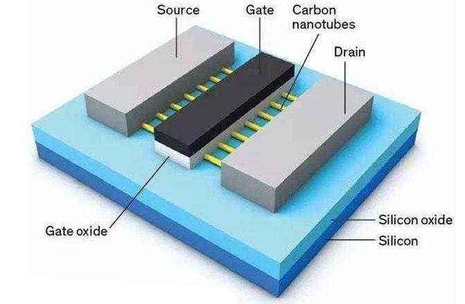 碳納米管具有超高的室溫載流子遷移率和飽和速度,室溫下,碳納米管中載流子遷移率大約為硅的100倍, 飽和速度大約是硅的4倍。在相同溝道長度下, 載流子遷移率越高,飽和速度越高,速度越快,并能增加能量的利用效率。